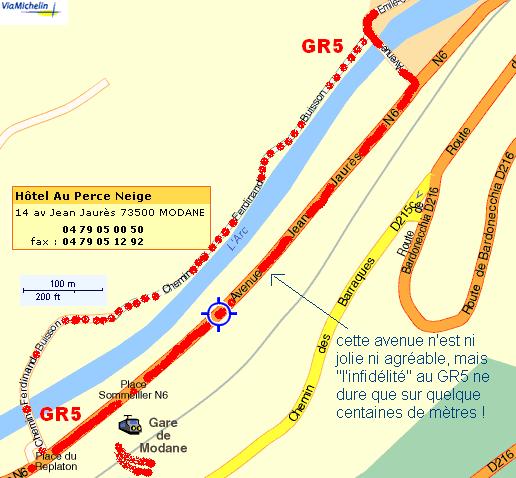 (le plan est celui de Modane-Gare, le centre de Modane est en haut et à droite, au bout de l'avenue J.Jaurès) |